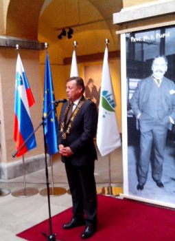 I jednim i drugim povodom, u četvrtak, 8. Oktobra 2015. U 17.00 , u Magistratu grada Ljubljane, otvorena je izložba posvećena životu i stvaralaštvu Mihajla Idvorskog Pupina. Izložbu je, u prisustvu najviših zvanica Ljubljane i Slovenije i diplomatskog kora, otvorio gospodin Zoran Janković, gradonačelnik Ljubljane. Zvanice je pozdravio gospodin Aleksandar Radovanović, ambasador Srbije u Sloveniji, a o Izložbi – životu i stvaralaštvu Mihajla I. Pupina govorio je Aleksandar Vlajković, izvršni predsednik Org. Odbora. Vlajković je potom proveo kroz izložbu glavne goste: g. Tomislava Nikolića, predsednika Republike Srbije i g. Zorana Jankovića, gradonačelnika grada Ljubljane.