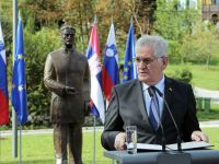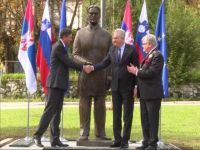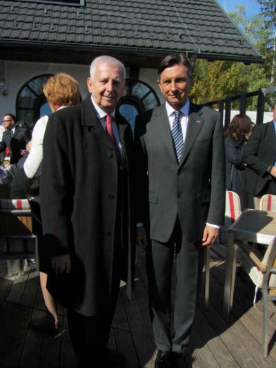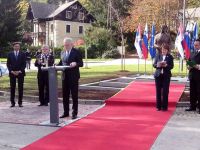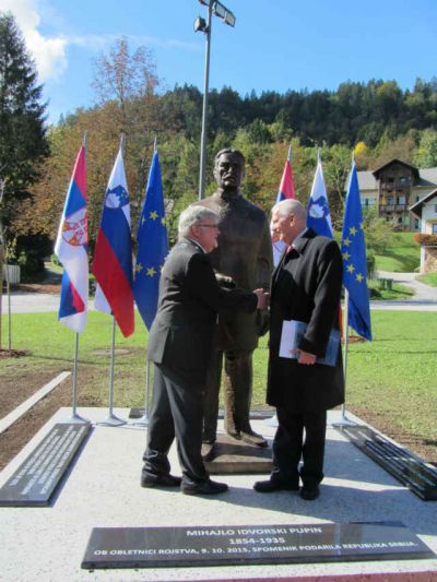 Na skupu su govorili predsednici Nikolić i Pahor, kao i gradonačelnik Fajfar i istakli značaj podizanja spomenika za buduće srpsko-slovenačke odnose. Pupin je inače počasni građanin Bleda i na taj način mu je odata zahvalnost što je svojim uticajem doprineo utvrđivanju granica nekadašnje Kraljevine Srba , Hrvata i Slovenaca , a zahvaljujući tome dobar deo teritorije sada pripada slovenačkoj državi. Pupin je imao veliki broj Slovenaca za svoje prijatelje i može se smatrati utemeljivačem srpsko- slovenačkog prijateljstva, koji su dobra osnova za još bolje odnose dva naroda i dve države.