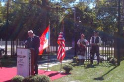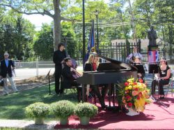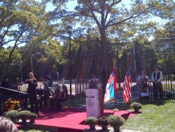Posle Jutarnje molitve za Teslu, održanoj u Srpskoj Sabornoj Crkvi “Sv. Sava” u Njujorku, članovi srpske delegacije su organizovano došli sa Menhetna u Vordenklif, na Long Ajlandu, u Njujorku, na dogadjaj otkrivanja spomenika Nikoli Tesli.