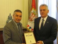 Posle uspešno održanih manifestacija obeležavanja jubileja Nikole Tesle u Srbiji i svetu, predsednik Republike Srbije Tomislav Nikolić je primio delegaciju Odbora za obeležavanje jubileja srpskih velikana, u kojoj su se nalazili: prof. Dr Branko Kovačević, predsednik, Aleksandar Vlajković, izvršni predsednik i Miroslav Stojanović, član Odbora. Sastanku je prisustvovala i Jasmina Mitrović-Marić, savetnik predsednika. Predsednik Nikolić je izrazio zadovoljstvo što su manifestacije kojima su obeležene Tesline godišnjice protekle na najbolji mogući način i na zadovoljstvo svih. Članovi Odbora su upoznali predsednika sa daljim planovima obeležavanja godišnjica srpskih velikana. Posebno, predstojeće godišnjice Mihajla Idvorskog Pupina, koja će takodje biti obeležena i u Srbiji, a i u svetu /Ljubljana, Bled, Njujork, Čikago, Moskva, Australija …. Predsednik, je izrazio zadovoljstvo što se jubileji obelžavaju bez sredstava iz državnog budžeta, uz pomoć donatora, kao i volonterskim radom pojedinaca. Prihvatio je da onima koji pomažu takve akcije budu uručene zahvalnice sa njegovim potpisom u znak sećanja na dobro delo koje su učinili za svoj narod. Prvu takvu zahvalnicu Predsednik Republike je lično uručio članu Odbora za negovanje stvaralaštva srpskih velikana g. Miroslavu Stojanoviću, istaknutom srpskom privredniku.