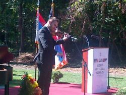 Neizmerno sam srećan što smo uspeli u našoj nameri da u godini u kojoj obeležavamao 70 godina od upokojenja našeg i svetskog velikana Tesle podignemo ovaj spomenik. To je veliki dan za srpski naraod, ne samo ovde u Americi, nego i za Srbe u matici i Srbe širom sveta. Naša Kancelarija želi da ovaj spomenik bude podignut širom sveta, u većini svetskih metropola, u svim zemljama gde žive naši ljudi, pa i tamo gde ih nema mnogo, ali Tesla zaslužuje spomenik, jer je zadužio čovečanstvo. Naši ljudi u dijaspori to isto žele. Želimo da nas u svetu prepoznaju po našim velikanima, kao što su Nikola Tesla. Mihajlo Pupin, Milutin Milanković, Rudjer Bošković, Pavle Savić …“